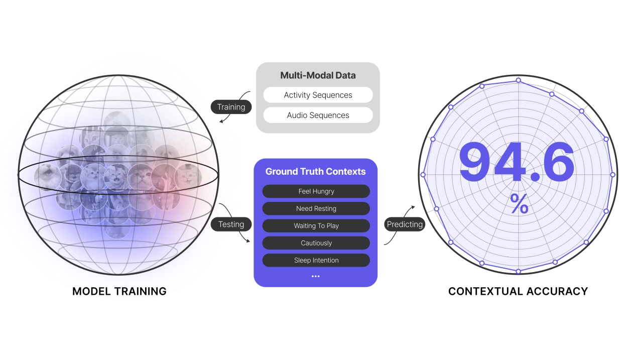 “我们想做的不仅仅是一个翻译器,而是动物的行为世界模型。”PettiChat创始人李景元表示,“人类已经有了语言大模型,以及基于多模态数据的世界模型。我们希望构建出动物的一套包含视觉,声音,生化信号,行为信号等的的世界模型。通过收集高质量的动物行为数据,我们可以利用更合理的物理建模架构,去预测宠物的健康和行为。”