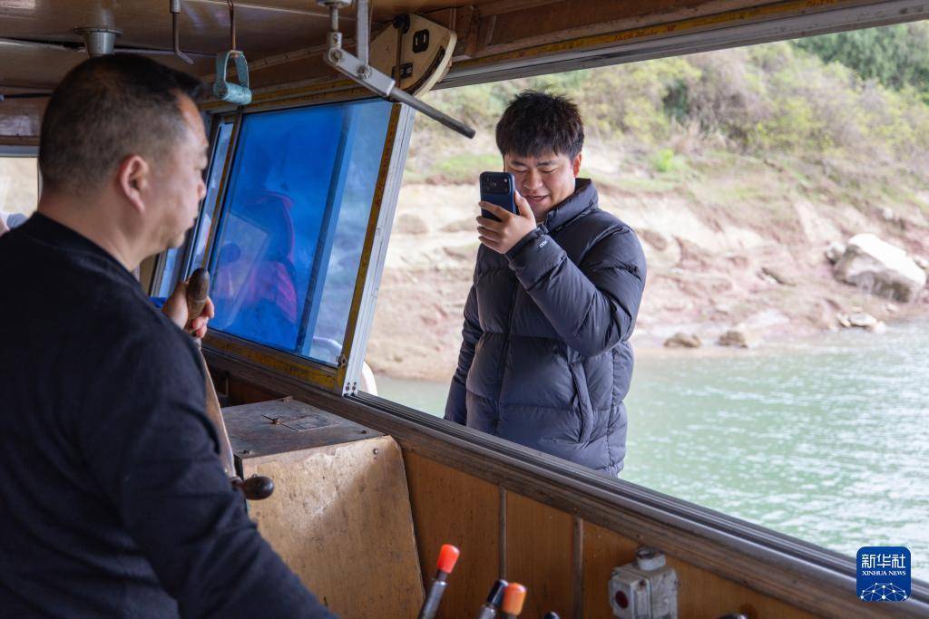 3月30日,在长江重庆忠县段,秦大益向搭乘最后一趟“渝忠客2180”客轮的乘客挥手告别。